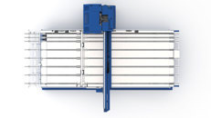 SIDEKINETIX: It is possible to always print in the direction of the long side of the glass, even with extremely large-sized glass sheets, in the easiest and fastest manner. A truly unique patented technology for an even more versatile machine, one that increases print efficiency.
